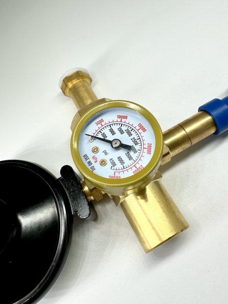 Насадка с манометром,нажимным клапаном гелий/воздух 60/40 и отсечным клапаном плавного нажатия, 1 шт.